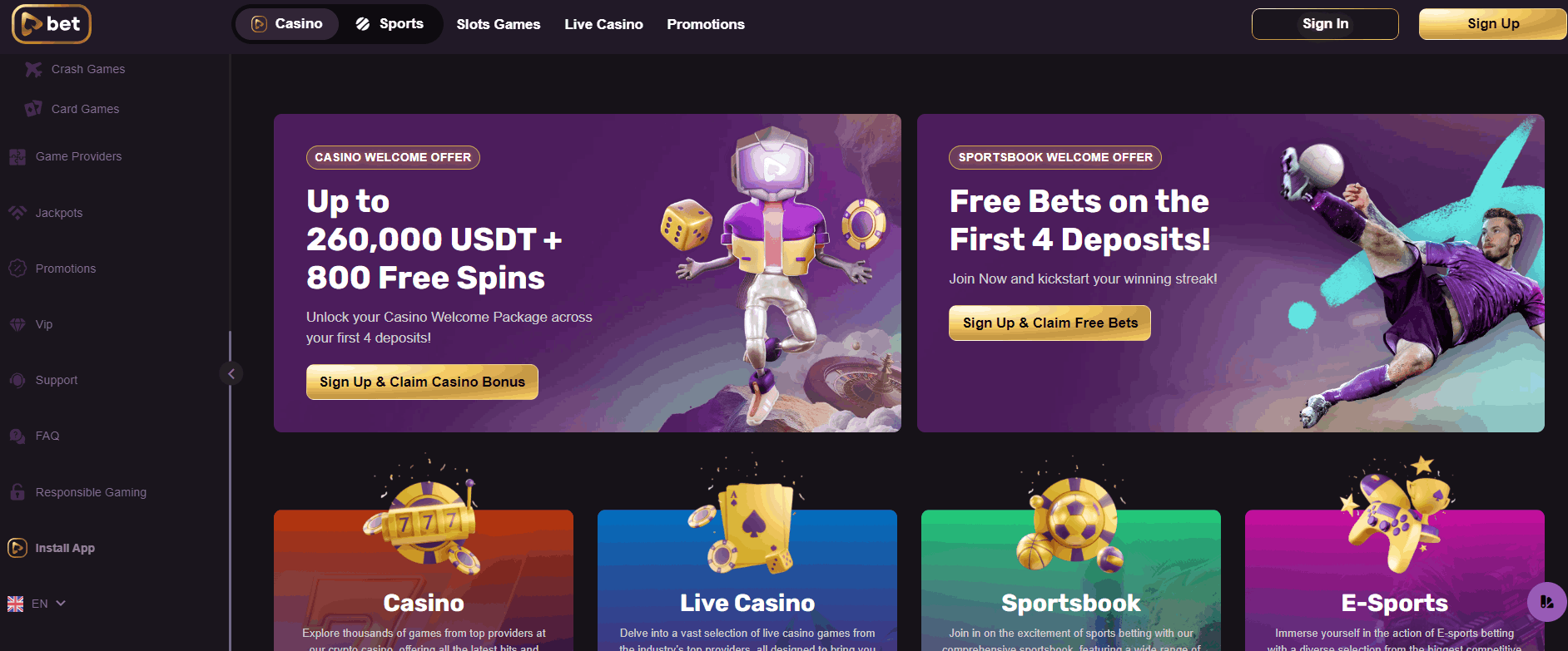 Playbet.io пропонує сотні ринків для спортивних подій, включаючи футбол, баскетбол, теніс та кіберспорт. У бібліотеці крипто казино ви знайдете величезний вибір слотів від провідних провайдерів, а також класичні настільні ігри. Нові гравці можуть скористатися щедрим вітальним бонусом, а регулярні пропозиції для постійних клієнтів дозволяють вигравати ще більше.