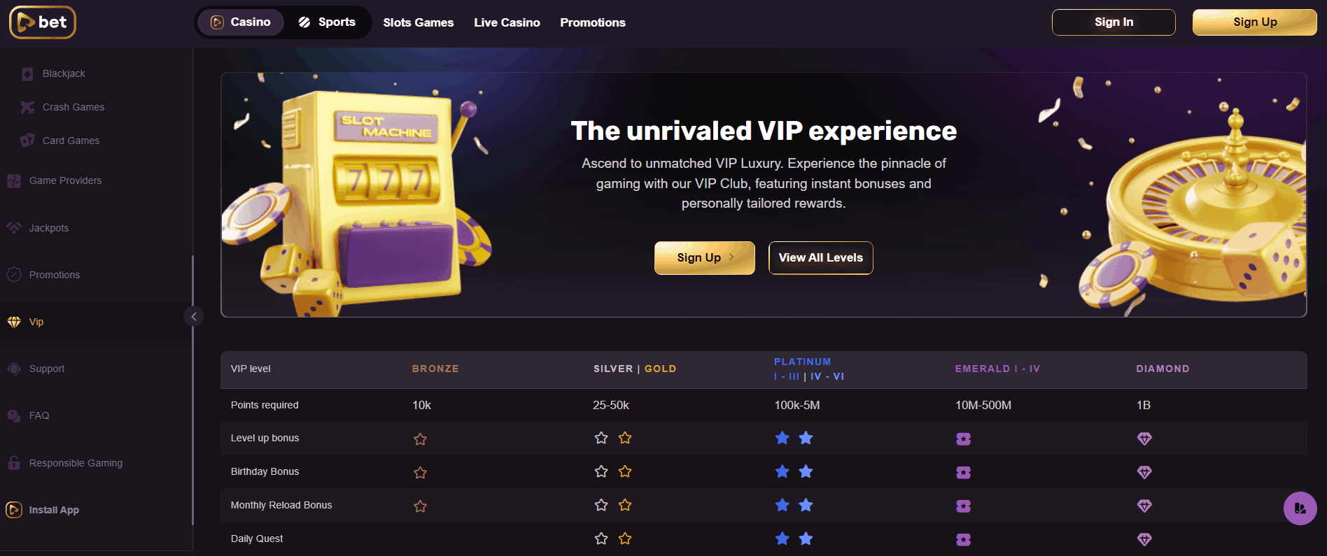 Гравці на найвищих рівнях, таких як EMERALD чи DIAMOND, отримують доступ до персонального VIP-хоста, який забезпечує індивідуальний підхід і створює бонуси відповідно до потреб. Щоб досягти вищих рівнів, потрібно заробляти очки, граючи в улюблені ігри.
