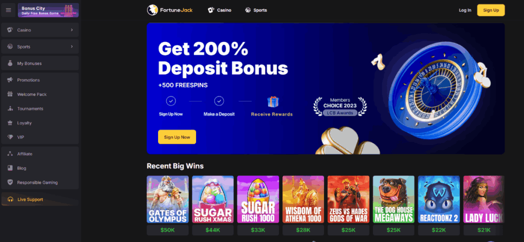 FortuneJack is a cryptocurrency casino launched in 2014, specializing in gaming and betting with Bitcoin, Ethereum, Dogecoin, and several other digital currencies. The platform offers a wide selection of games, including slots, table games, live casino, sports betting, and provably fair titles that ensure complete transparency and fairness.