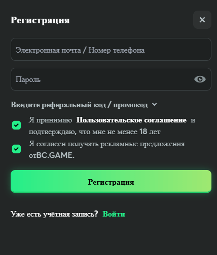 Регистрация в BC.Game